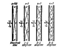 (рис. 13 Столб воздуха, совершающий колебания с обертонами)