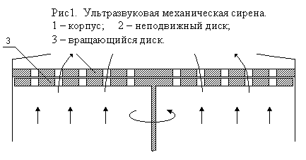 УЗ сирена – два диска с большим количеством отверстий, помещенные в камеру (рис. 1).