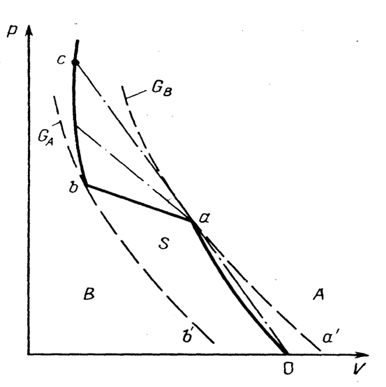 Для интерпретации результатов ударного нагружения образца очень важно знать структуру этого нагружения. Например, Гюгонио, показанный на рис.2, такой, что одиночная волна любой амплитуды является стабильной; однако Гюгонио на рис 3-5 такой, что ударная волна в некоторых диапазонах давлений непостоянна и вырождается во множество волновых фронтов. Область неустойчивости определяется линией Релея, которая представляет собой прямую, проведенную из точки P=0,V=V0 к P,V соответствующих конечным значениям давления и объема после ударного нагружения. Если эта линия пересекает Гюгонио в точке перегиба, как на рис.6, то область выше перегиба и ниже точки повторного пересечение линии Релея с Гюгонио (то есть между Pa и Pb ) - область нестабильности. Состояния в этой области могут быть достигнуты только с помощью двух волновых фронтов; амплитуда из которых соответсвует давлению Pa. Для специфического случая, когда Pa есть упругий предел Гюгонио (HEL), то первая волна будет упругой волной, которую часто называют упругим предшественником.