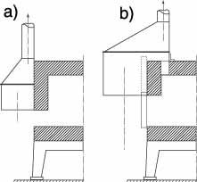 Рис 2. Зонты-козырьки у нагревательных печей: а — у щелевого отверстия при выпуске через него продуктов горения; б — у отверстия, снабженного дверкой при выпуске продуктов горения через газовые окна. |