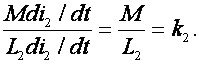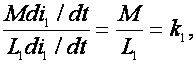 Предположим, что в первом контуре на рис.1, а протекает ток i1, а второй контур разомкнут. Тогда отношение напряжения, индуцированного в катушке L2, к напряжению в катушке L1 выразится коэффициентом