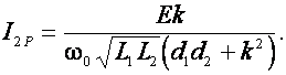 Выражения (17) и (19) соответствуют (12) и (14) и описывают амплитудно-резонансные характеристики токов I1 и I2 в явной относительно частоты (расстройки e) форме.