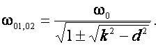 Чтобы получить выражения для частот связи при k > kкр2, в (22) надо подставить значение e = а/Q = 1 — w02/w2. Тогда