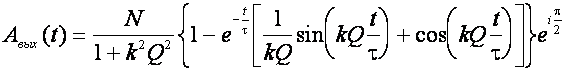 Определяя вычеты, получим следующее окончательное выражение для комплексной огибающей выходного сигнала (угол Q0 принят равным нулю)