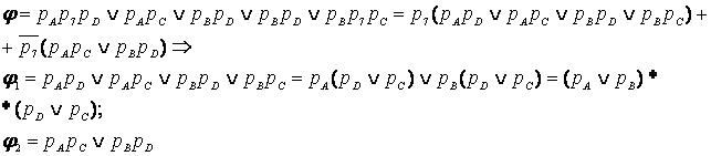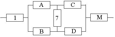 6) Элементы A, B, 7, C, D образуют(рис 1.1) мостиковую систему, которую можно заменить квазиэлементом N. Для расчёта вероятности безотказной работы воспользуемся методом кратчайших путей.
