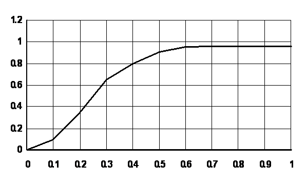 График зависимости вероятности безотказной работы моста N от вероятности без работы его элементов. По графику находим при PN=0,9574