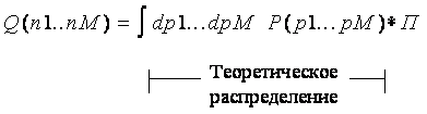 Где Q(n1 . nM) измеряемое распределение и П статистический шум (определяемый с помощью распределения Пуассона) который ”размазывает” P (p1 .pM) (теоретическое распределение), особенно для малого числа измерений.