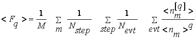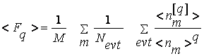Для достижения статистической точности факториальных моментов Fq’ые индивидуальных ячеек определенные в формуле (6) , усреднены по событиям и по М. ячейкам (“ вертикальный анализ ”). Вертикально (по событиям) усредненные моменты могут быть определены как двойное среднее число: