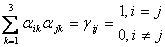 Первая сумма в равенстве (28) равна 1 или 0, в зависимости от того равняется или не равняется индекс i индексу j. Это компоненты тензорной единицы. Обозначим её так: