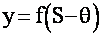 Выходной сигнал нейрона y определяется путем пропускания уровня возбуждения S через нелинейную функцию f: