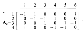 Строка матрицы А показывает, какие ветви выходят из каждого независимого узла графа цепи (и входят в него), а столбец – к каким узлам присоединена ветвь.