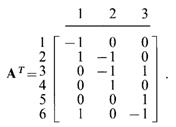 Приняв в качестве базисного узел 4 и соответственно вычеркивая четвертую строку в (3.1), получим редуцированную матрицу соединений: