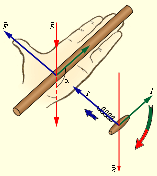 входили в ладонь, а вытянутые пальцы были направлены вдоль тока, то отведенный большой палец укажет направление силы, действующей на проводник.