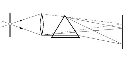 Сущность открытий Ньютона поясняется следующими опытами (рис.1) свет от фонаря освещает узкое отверстие S (щель). При помощи линзы L изображение щели получается на экране MN в виде короткого белого прямоугольника S`. Поместив на пути призму P, ребро которой параллельно щели, обнаружим, что изображение щели сместится и превратится в окрашенную полоску, переходы цветов, в которой от красного к фиолетовому подобны наблюдаемым в радуге. Это радужное изображение Ньютон назвал спектром.