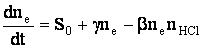 Из (3) видно, что концентрация электронов выходит на насыщение при ne = S0/bnHCl c постоянной времени t0 = 1/bnHCl. Оценим порядок величин определяющих величину выражения (3). Рассмотрим два случая.
