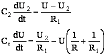 U - напряжение на лазерных электродах; U2 - напряжение на обострителе C2; Cе - емкость лазерных электродов (Се ~ 4 пФ). Если обозначить начальное напряжение на обострителе через U0, то можно показать, что система уравнений (2) имеет следующее приближенное решение