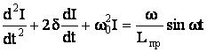где δ=Rпр/2Lпр ; ω02 =1/LпрCд. Решение уравнения (10) при нулевых начальных условиях имеет вид