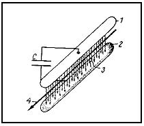 см3. При давлении порядка атмосферного это соответствует значениям напряженностей электрического поля, лежащим вобласти 104-105 в/см. легко увидеть,что подобные значения напряженностей технически несложно могут быть реализованы лишь при сравнительно небольших электродных расстояниях порядка нескольких сантиметров. Отсюда следует необходимость использования электрического поля приложенного поперёк лазерной трубки.