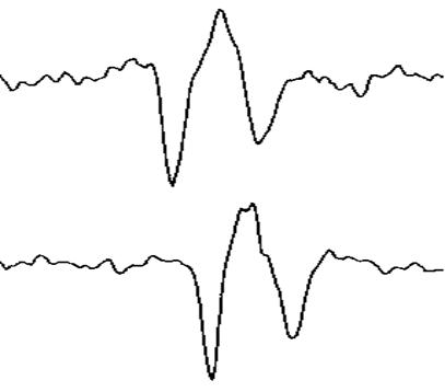 Профили волн на рисунке 10 также сдвинуты (наблюдается замедление рэлеевской волны), при этом волна 1 возбуждалась в точке С (волна 2 в точке С/), а регистрировалась в точке Д (волна 2 в точке Д/), т. е. волна 1 распространялась на гладкой поверхности, а волна 2 по периодической наноразмерной структуре (при этом волна 2 возбуждалась и регистрировалась на этой структуре). Импульс 2 приходит с задержкой 20 нс., что составляет замедление скорости порядка 50 м/с. В данном случае длина ПАВ составляла 100 мкм., при размере дефекта периодической структуры порядка 100 нм., т. е. длина волны много больше периода системы, поэтому не наблюдалось брэгговского отражения волны, а периодическая система работает, как неоднородная поверхность (шероховатая пленка).