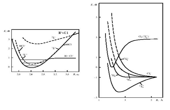 Как видно, за исключением молекулы фтора, основной терм молекулярного иона не пересекается с термом основного состояния молекулы.