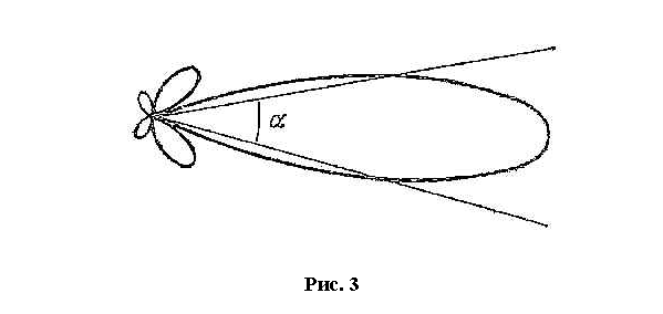 В самом общем случае линейный размер антенны d и длина волны λ определяют угловую ширину главного лепестка диаграммы направленности по половинной мощности (рис. 3): α радиан @