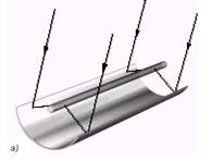 Сфокусировать солнечные лучи можно и с помощью вогнутого зеркала. Оно является основной частью гелиоконцентратора, прибора, в котором параллельные солнечные лучи собираются с помощью вогнутого зеркала. Если в фокус зеркала поместить трубу с водой, то она нагреется. Таков принцип действия солнечных преобразователей прямого действия.
