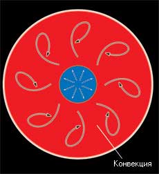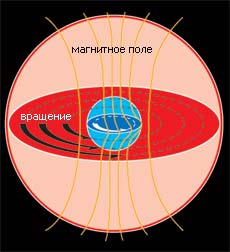 Все мы знаем, что энергия любит переходить из одной формы в другую. Электричество легко превращается в тепло, а кинетическая энергия — в потенциальную. Огромные конвективные потоки электропроводящей магмы плазмы или ядерного вещества, оказывается, тоже могут свою кинетическую энергию преобразовать во что-нибудь необычное, например в магнитное поле. Перемещение больших масс на вращающейся звезде в присутствии небольшого исходного магнитного поля могут приводить к электрическим токам, создающим поле того же направления, что и исходное. В результате начинается лавинообразное нарастание собственного магнитного поля вращающегося токопроводящего объекта. Чем больше поле, тем больше токи, чем больше токи, тем больше поле — и все это из-за банальных конвективных потоков, обусловленных тем, что горячее вещество легче холодного, и потому всплывает