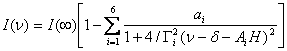 Теоретическая форма мессбауэровского спектра при наличии магнитного расщепления ядерных уровней может быть представлена суперпозицией лоренцевских линий: