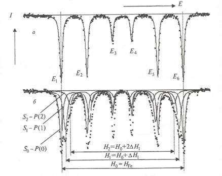 В качестве примера на рис. 1.4 приведены мессбауэровские спектры чистого железа (а) и закаленного от 820 ° C сплава железа