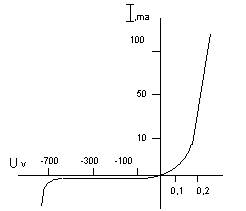 Зависимость тока в цепи, содержащей р-n-переход, от напряжения источника тока изображена на рисунке 42.