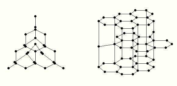Шары второго слоя, для того чтобы они легли наиболее плотно, должно быть помещены в лунки первого слоя. Заполнить все лунки шарами того же самого размера нельзя, поэтому лунки заполняются через одну. Предположим, лунки отмеченные крестиком, остались пустыми, а лунки, отмеченные точками, заполнены шарами, очевидно, характер плотной упаковки не изменился бы, если бы шарами заполнили лунки, отмеченные крестиком.