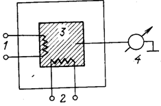 Рассмотрим статический калориметр, в котором снижены требования к термоизоляции и отпадает необходимость в определении теплоемкости тc калориметрической насадки (рис. 1). В этой схеме используется метод замещения. В ней для калибровки прибора 4, измеряющего повышение температуры при рассеянии измеряемой мощности, подводимой к плечу 1, используется известная мощность постоянного тока или тока низкой частоты, подводимая к плечу 2. Предполагается, что температура насадки 3 изменяется одинаково при рассеянии равных значений мощности СВЧ и постоянного тока. Статические калориметры позволяют измерять мощность несколько милливатт с погрешностью менее ±1%.