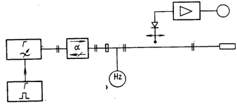 В основе определения полного сопротивления нагрузки лежит связь его с коэффициентом стоячей .волны и положением минимума напряжения в линии. Наибольшее распространение получило определение полного сопротивления по данным измерения КСВ и положения минимума стоячей волны с помощью измерительной линии. Соответствующая функциональная схема представлена на (рис. 10). Устройство, полное сопротивление которого необходимо измерить, подсоединяют к генератору СВЧ через измерительную линию. Промышленностью выпускаются измерительные линии, перекрывающие частотный диапазон от 0,5 до 37,5 ГГц.