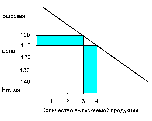 Там, где объём производства связан с конкретным уровнем цены, монополисту приходится одновременно определять цену на свою продукцию и решать вопрос о величине объёма производства. Это свидетельствует о том, что монополист не так уж свободен в вопросе определения цены, т. е. график свидетельствует, что при установлении высоких цен на продукцию монополист приходит к малому объёму продаж, а, следовательно, для увеличения объёма производства монополист должен устанавливать оптимальный уровень цен и обеспечить максимальный сбыт продукции и максимальный уровень прибыли.
