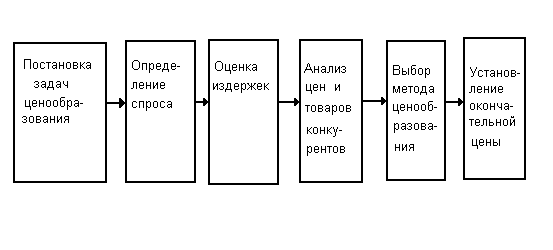 Таким образом, возможности и проблемы политики цен меняются в зависимости от типа рынка. За исключением случаев работы на рынках чистой конкуренции, фирмам необходимо иметь упорядоченную методику установления исходной цены на свои товары. На рис. 8 представлена методика расчёта цен, состоящая из шести этапов, которые будут рассмотрены далее.