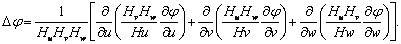 - Напишите общие выражения градиента, дивергенции, ротора, лапласиана в криволинейных координатах.