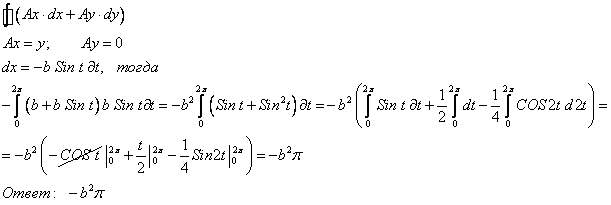 по контуру окружности x=bcost; y=b+bsint, лежащей в плоскости XOY.