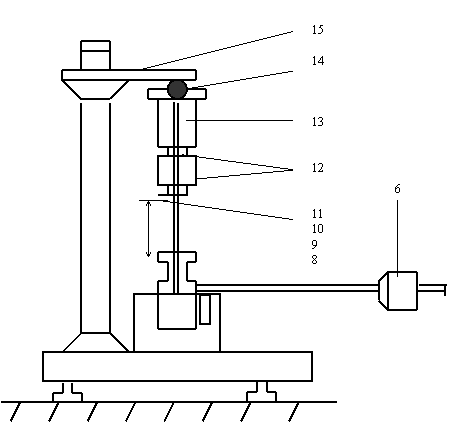 7. Измерить h –расстояние от верхней плоскости цилиндра 4 до нижней кромки головки стержня “сваи” 8 и H1 –расстояние от верхней кромки головки стержня 8 до указателя на грузе 12. Результаты измерений записать в таблицу.