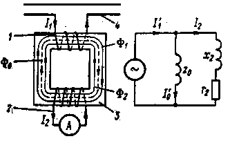 Из принципиальной схемы трансформатора видно, что между первичной и вторичной обмотками не имеется электрической связи. Они изолированы друг от друга на полное рабочее напряжение. Это и позволяет осуществить непосредственное присоединение измерительных приборов или реле ко вторичной обмотке и тем самым исключить воздействие высокого напряжения, приложенного к первичной обмотке, на обслуживающий персонал. Так как обе обмотки наложены на один и тот же магнитопровод, то они являются магнитно-связанными.