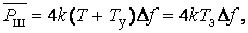Обозначим вносимый усилителем шум через Рвых, Вт. Если необходимо учесть эту мощность при расчете ОСШ, то можно поступить так. Усилитель считать идеальным (без шумов), а источник теплового шума включить на его вход, считая, что он создает шум мощностью Рвх = Рвых/Kр, Вт. Чтобы учесть эту мощность введем понятие температуры шума усилителя Ту Получаем: