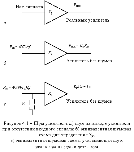 является эквивалентной температурой шума системы “детектор + усилитель”. Фактический тепловой шум здесь учитывается резистором R, работающим при температуре Tэ.