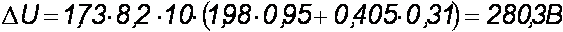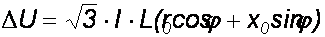 Потерю напряжения ΔU, В, вычисляют по формуле