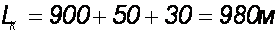 Найдем длину всего кабеля когда расстояние от устья до станции управления 50м,запас30 и глубина спуска насоса 900 м.