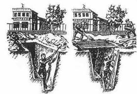Открытые щели выкапывают глубиной до 1,5 м, шириной поверху 1,1-1,2 м и шириной по дну 0,5-0,6 м.