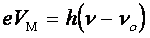 определяет наименьшую частоту фотоактивных фотонов (красную границу фотоэффекта для данного катода). Уравнение (2) теперь можно записать в виде