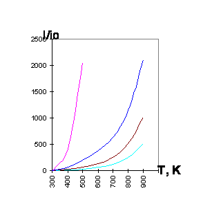 Целый ряд исследований посвящен выяснению влияния температуры катода на фототок. Первоначальные опыты со спектрально неразложенным светом давали неясные результаты и в общем устанавливали слабую зависимость iф от Т,если изменение температуры не вызвало изменения состояния поверхности, агрегатного состояния или фазовых превращений. Изучение фотоэффектаб вызываемого монохроматическим светом,не сомненно,установило температурный эффект.Прит этом фототок iф слабо меняется с Т для n » nо и резко возростает с повышением температуры при n~no(и в особенности для n<no). Примером могут служить данные для Рd ,приведенные на рис.6