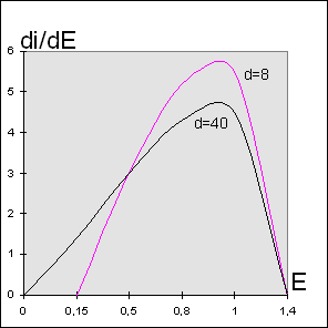 Для тонких пленок количество медленных электронов уменьшается и возрастает число электронов с энергиями, близкими к максимальной, так как потери энергии, приводящие к превращению быстрых фотоэлектронов в медленные,на более коротком пути к поверхности в тонком фооткатоде уменьшаеются .