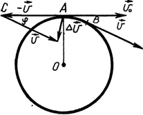 , направлен в сторону кривизны окружности в точке А. По свойству векторов модуль разности двух равных векторов, образующих малый угол