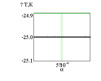 Рис. 11 Зависимость стационарной температуры от коэффициента барической сжимаемости. |