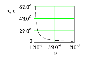 Рис 12. Зависимость времени установления температуры от коэффициента барической сжимаемости. |